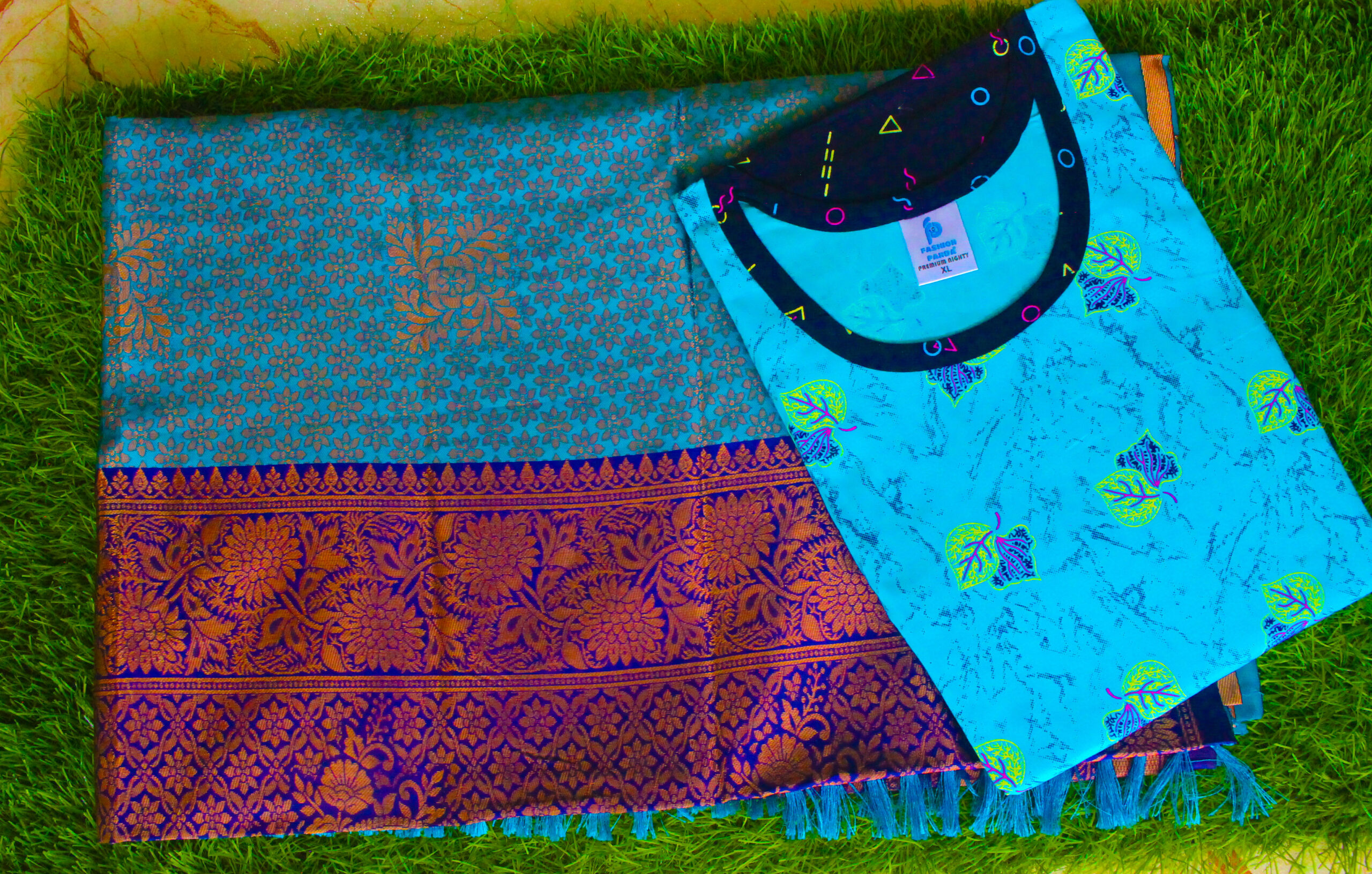 FANCY SAREE WITH COTTON REALITY FROCK NIGHTY, COMFORTABLE NIGHTY AND